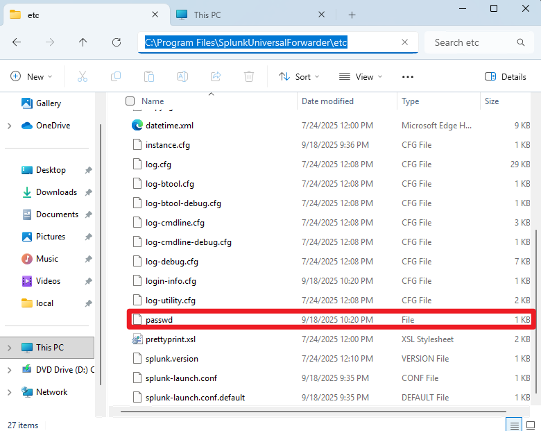 if (Test-Path "C:\Program Files\SplunkUniversalForwarder\etc\passwd") {