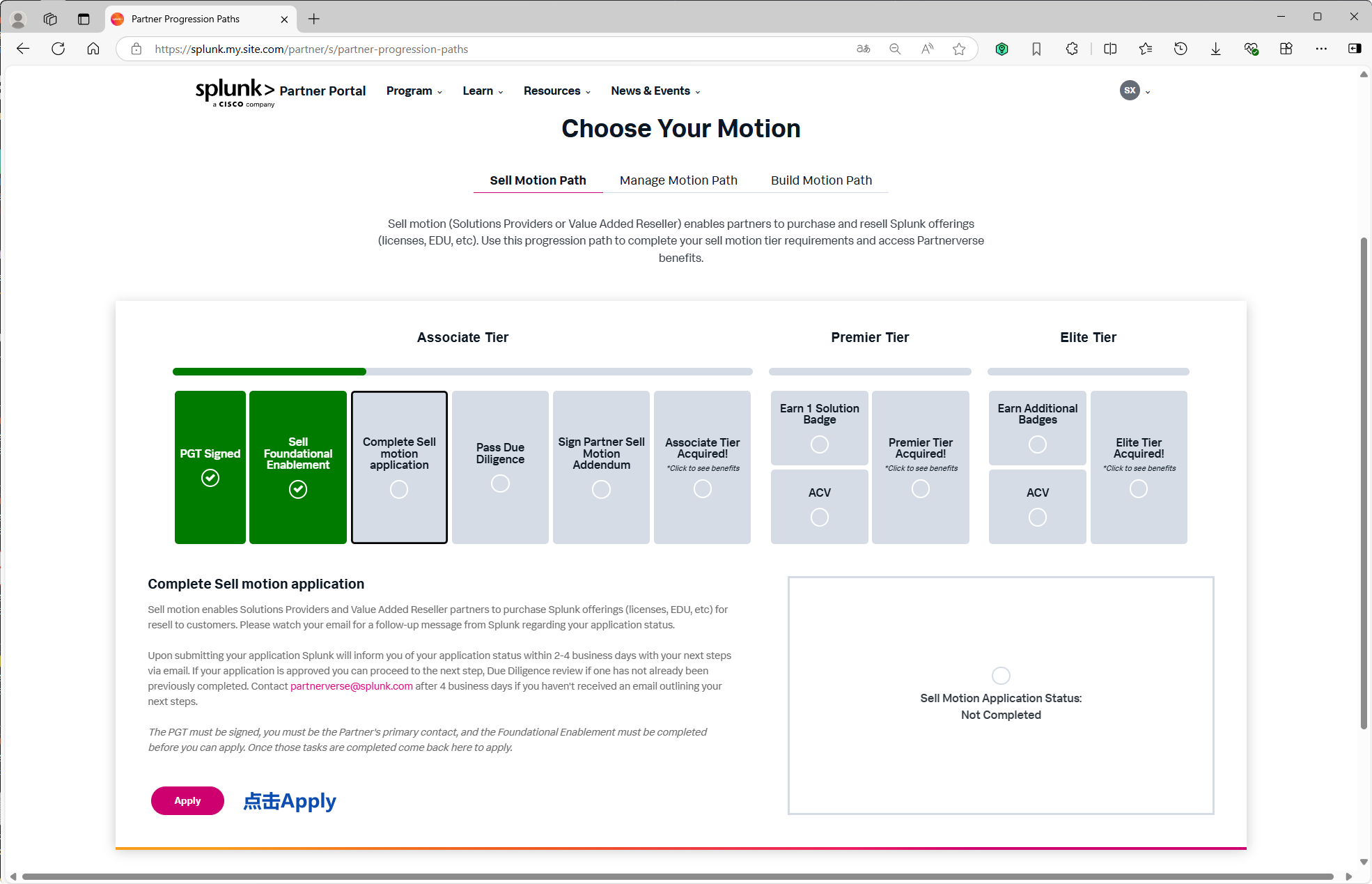 7.(第三阶段)点击进入下一阶段(Complete Sell Foundational Enablement),点击Apply。