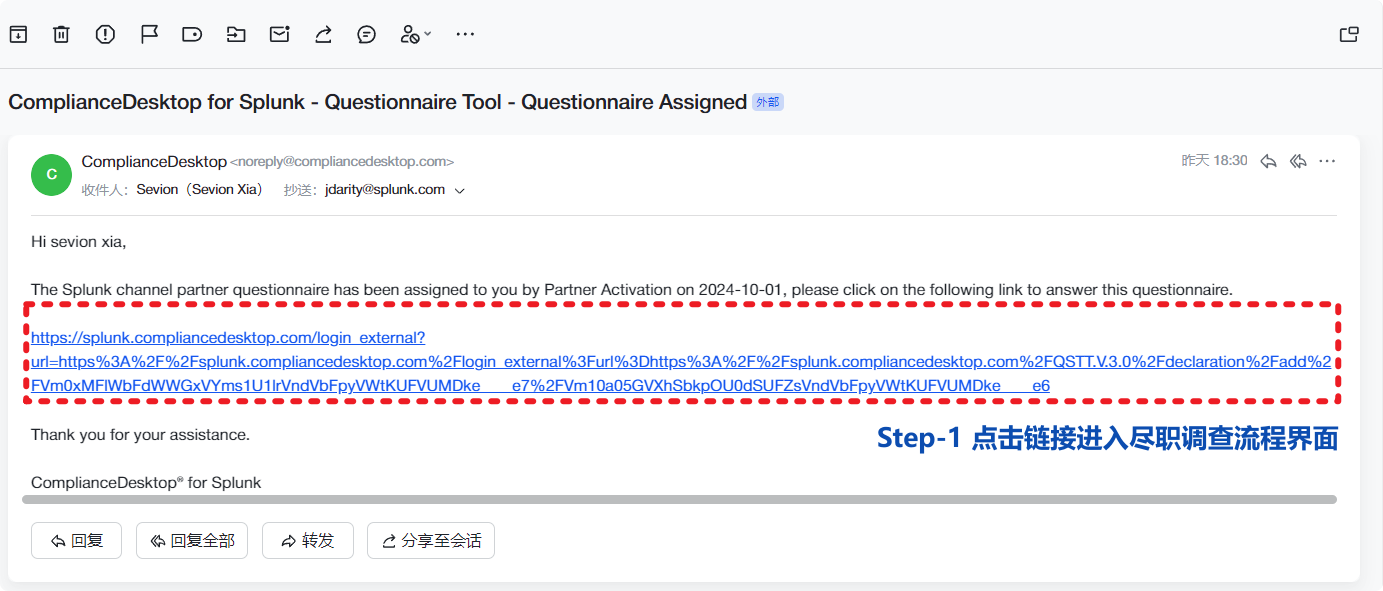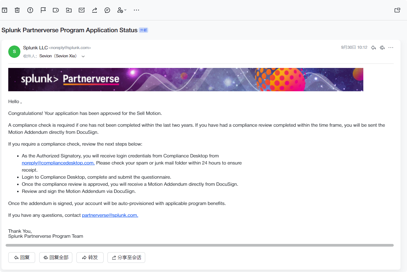 12.请查看邮箱是否收到Splunk官方的邮件(告知您进入背调阶段),如下:
