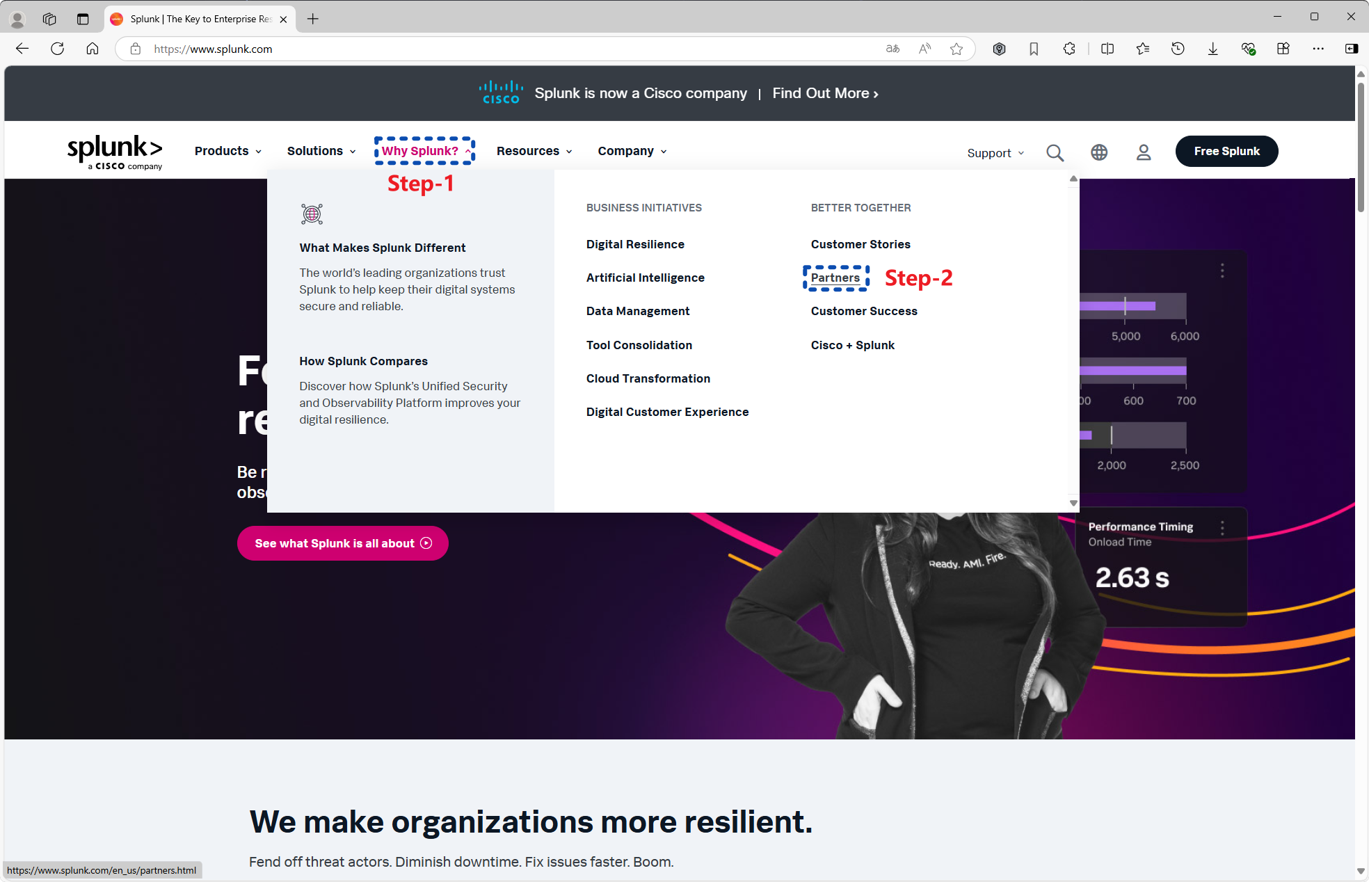 2.顶部菜单栏找到Why Splunk?栏目,从中选择Partners选项,点击进入。